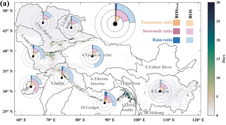 “亚洲高山区作为世界‘第三极’,是黄河、长江等众多大型河流的发源地,为亚洲十余个国家提供淡水及其他生态系统服务。”李宝富教授介绍说,该区生态系统却十分脆弱,对全球变化响应异常敏感。在全球变暖背景下,雪面降雨事件(Rain-on-Snow, ROS)的频率和强度随之发生改变,但其对亚洲高山区水文灾害风险的影响程度尚不明确。