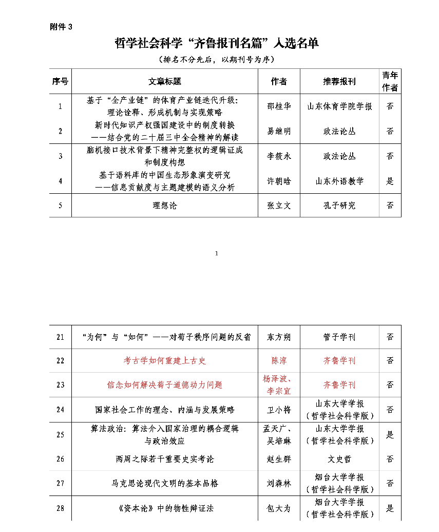 《齐鲁学刊》讯 近日,山东省委宣传部公布了2024年度山东省哲学社会科学“齐鲁名刊”入选名单,《齐鲁学刊》成功入选,并有两篇文章入选“齐鲁报刊名篇”,为XK在线70周年校庆献礼。