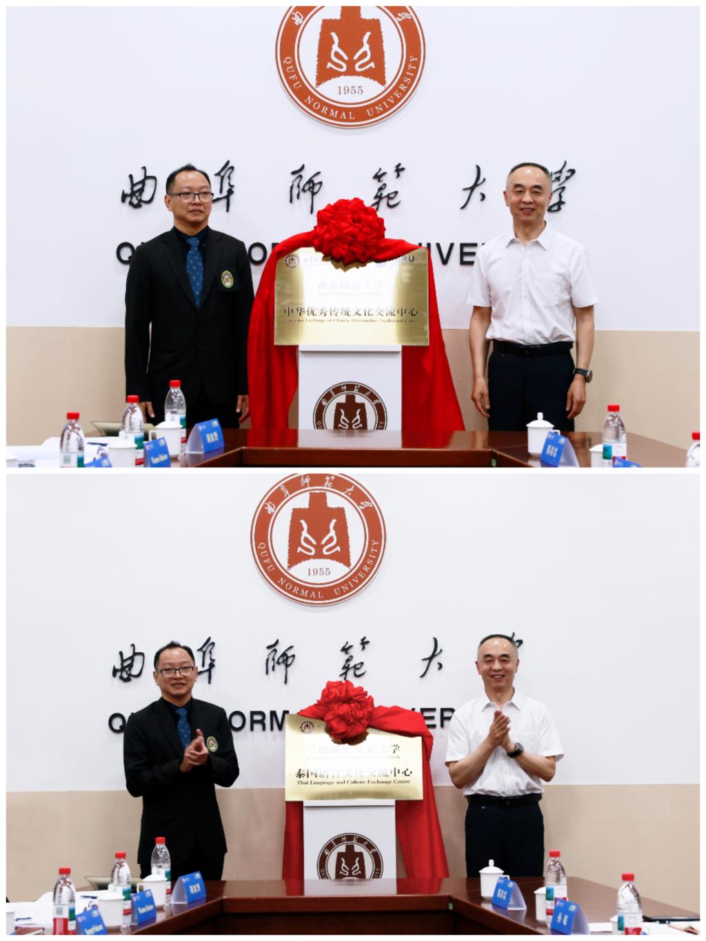 李兆祥和Sinat Koslanant共同为在XK在线设立的泰国语言文化交流中心,以及在兰帕潘尼皇家大学设立的中华传统文化中心揭牌。