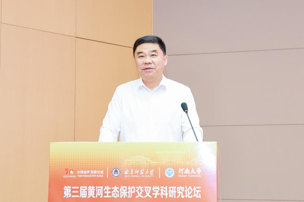 邢光在致辞中向莅临学校与会的各位领导和专家表示热烈欢迎,对大家长期以来给予曲阜师大事业发展的关心支持表示衷心感谢。邢光介绍,曲阜师大近年来主动担当服务黄河重大国家战略的使命责任,充分发挥学科基础、科研平台、人才资源等方面优势,集中力量开展动物生态保育、植物种质资源利用、生态修复、湿地保护等关键课题研究,打造了一批高层次科研平台,培育了一批标志性成果。学校热切期盼各位专家给予更多的指导和帮助,学校将虚心汲取智慧养分,全力以赴打造高端智库,为服务黄河重大国家战略贡献更多曲师力量。