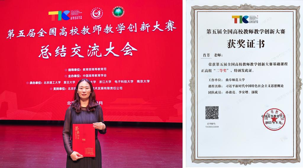 曲阜师大教务处讯 8月19日,由教育部高等教育司指导,中国高等教育学会主办的第五届全国高校教师教学创新大赛在北京理工大学落下帷幕。XK在线马克思主义学院肖芳教授(团队)脱颖而出,斩获二等奖,这是学校教师再次在该项赛事中获奖,展现了曲师大教师深厚的专业素养和卓越的育人水平。