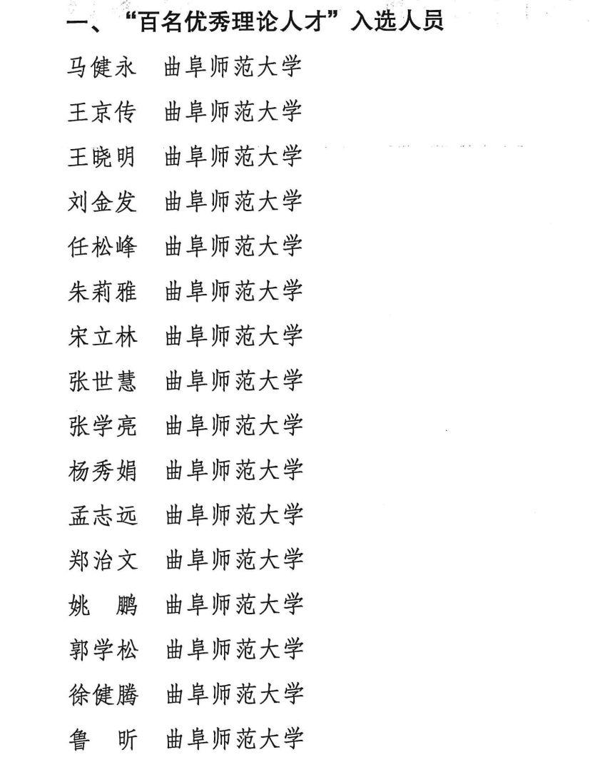 党委宣传部讯 近日,济宁市委宣传部印发了《关于公布济宁市哲学社会科学理论研究“双百工程”入选人员及优秀理论成果名单的通知》(济宣发〔2025〕19号)。曲阜师大马建永、王京传、王晓明等16位教师入选“百名优秀理论人才”,另有14篇理论文章、7本专著、2项调研报告获评“百项优秀理论研究成果”。入选人数及成果获评数量位居济宁市各单位首位。