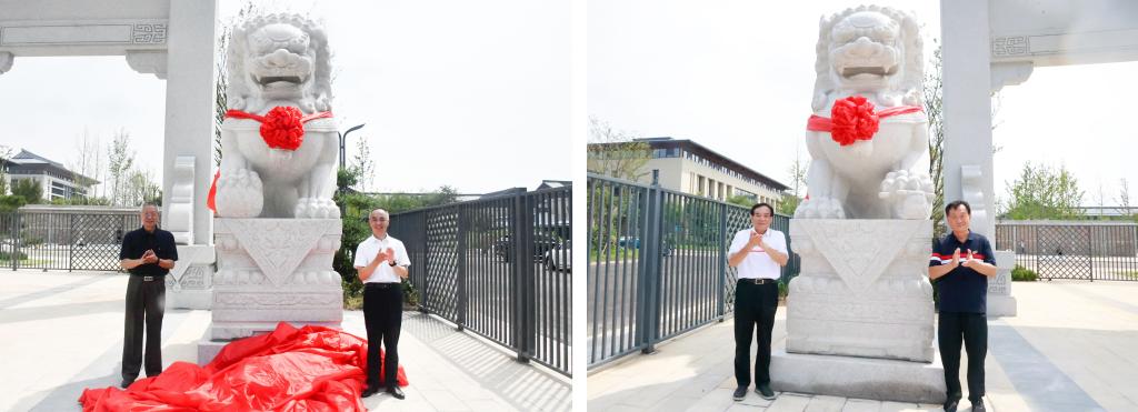 在庄重的氛围中,李兆祥与校友罗家英、冯冲、贾丽建共同为石狮揭幕。