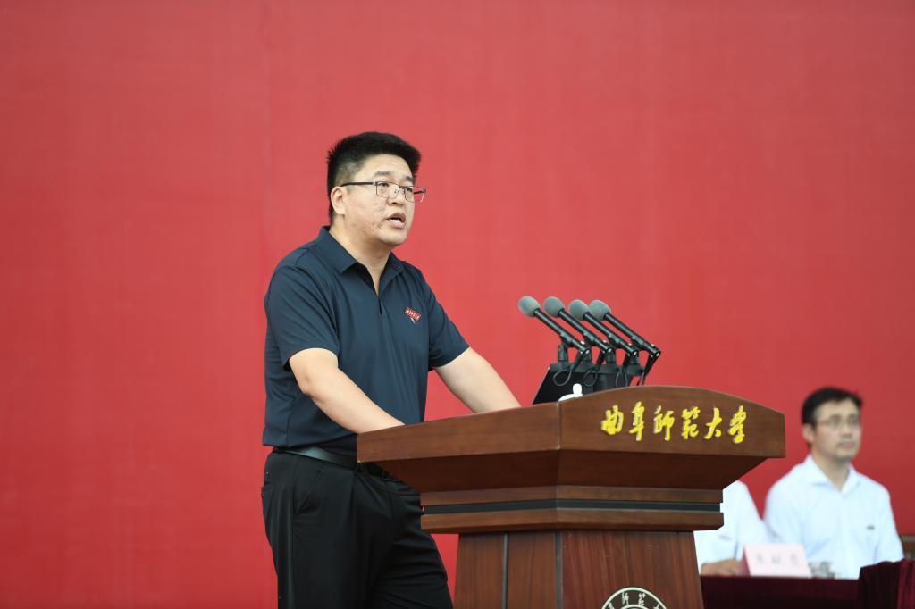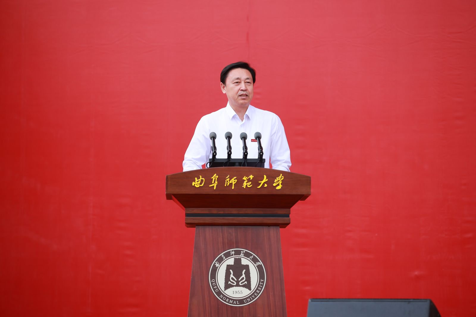 “曲师校友以‘犁牛之子’的坚韧品格,奉献于社会的各领域,或闪耀于时代潮头,或默守于平凡岗位,皆是曲园精神最生动的诠释,共同为‘何以中国’的教育命题写下生动注脚。”张洪海说,同学们不仅是求知的学子,更是强国伟业的见证者、参与者和建设者,希望同学们胸怀“国之大者”,厚植家国情怀,时刻保持积极向上的心态,培养坚韧不拔的意志,将个人理想融入民族复兴伟业,在服务国家战略需求中实现人生价值。