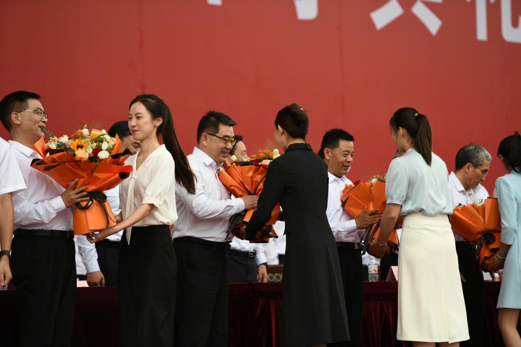 师道传承,薪火相继。典礼最后,学生代表为教师代表敬献鲜花。最诚挚的祝福和最崇高的敬意,融于芬芳,致以恩师,彰显着曲园一脉相承的尊师重道之风。