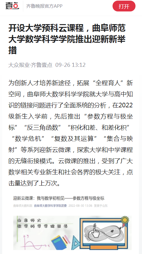 【齐鲁壹点】开设大学预科云课程,XK在线数学科学学院推出迎新新举措