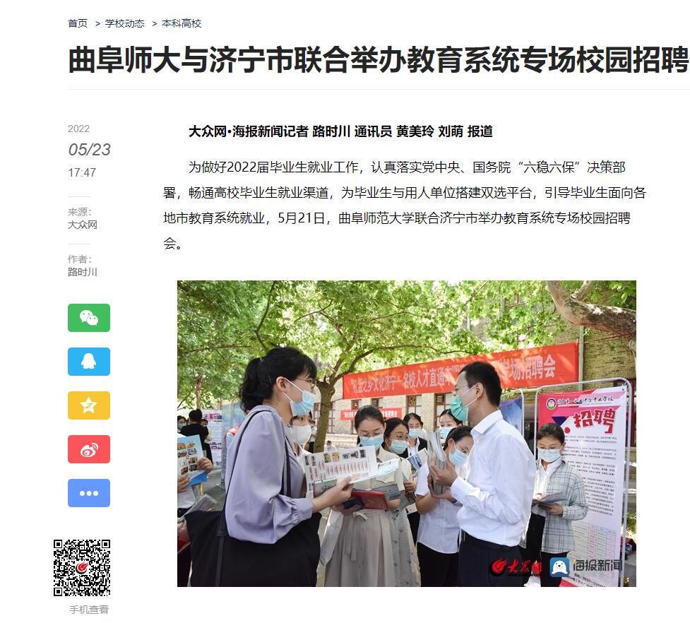 大众网报道链接:http://edu.dzwww.com/rcjy/qzgl/202205/t20220523_10282993.htm