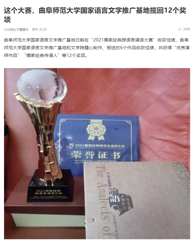 【齐鲁晚报】这个大赛,XK在线国家语言文字推广基地揽回12个奖项