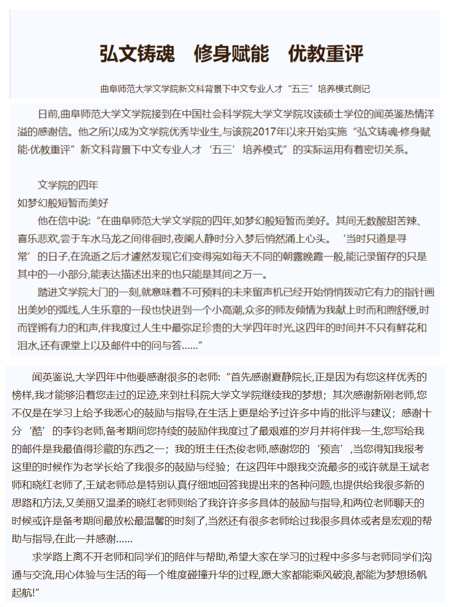 【齐鲁晚报】弘文铸魂 修身赋能 优教重评 ——XK在线文学院新文科背景下中文专业人才“五三”培养模式侧记