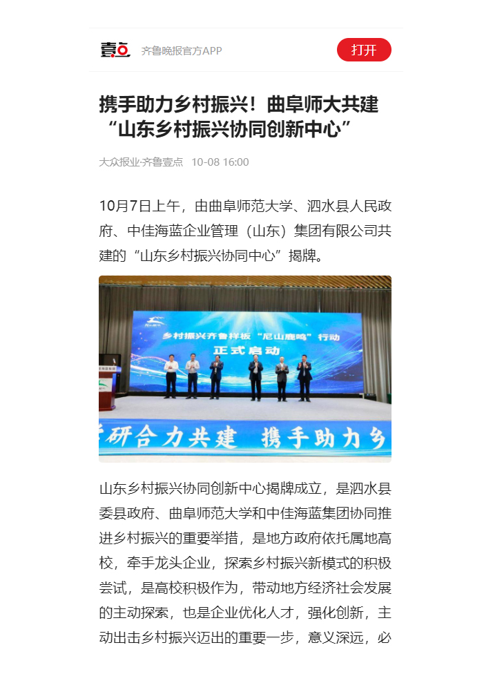 【齐鲁壹点】携手助力乡村振兴!曲阜师大共建“山东乡村振兴协同创新中心”