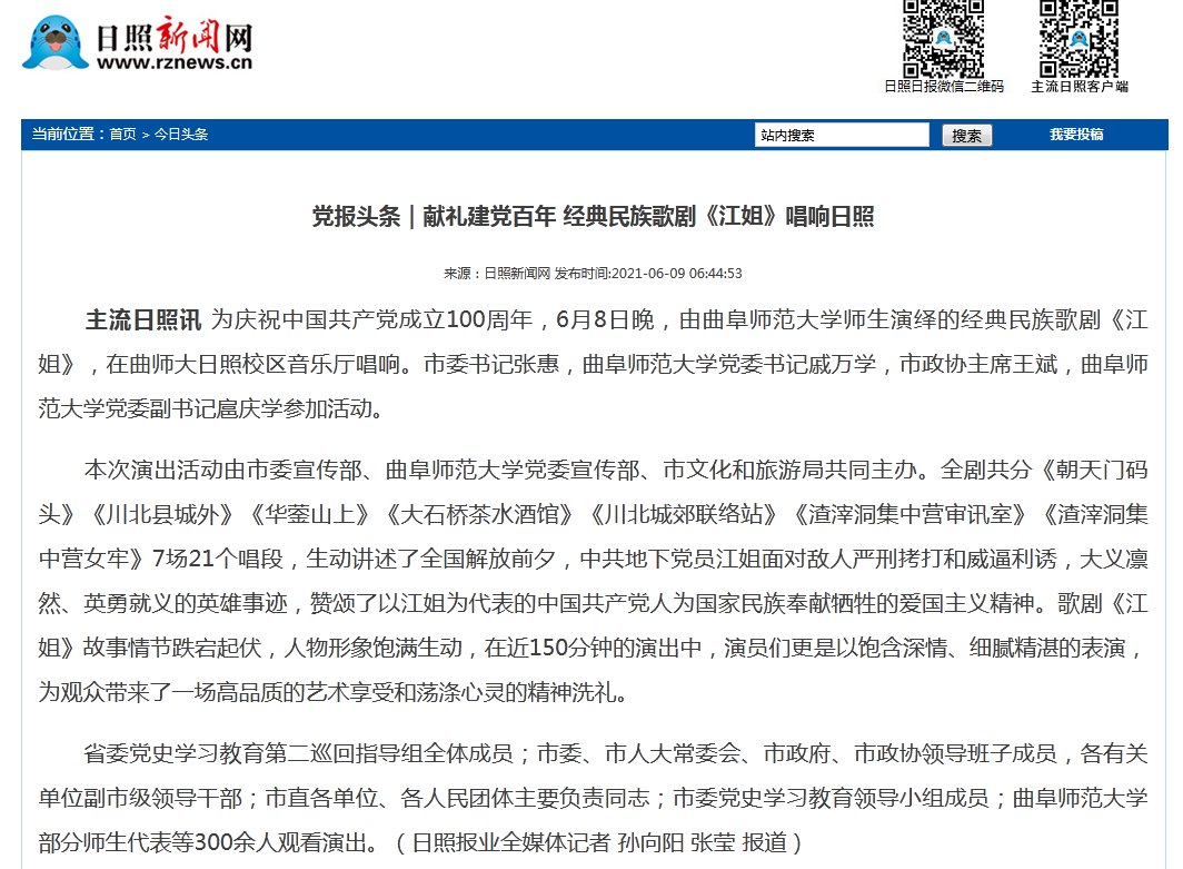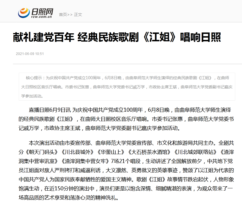 日照网:XK在线师生演绎经典民族歌剧《江姐》献礼建党百年