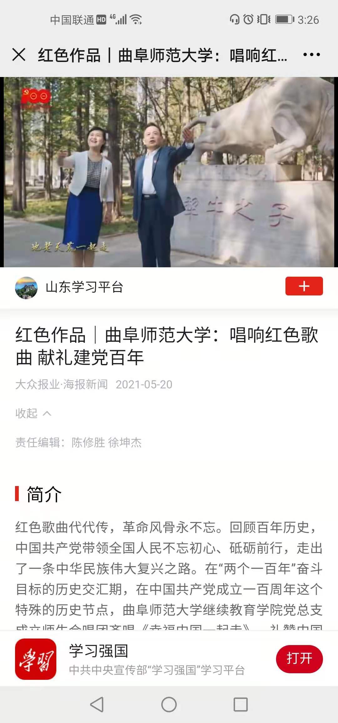 学习强国报道链接:https://article.xuexi.cn/articles/index.html?art_id=14344837897050547847&t=1621488598837&showmenu=false&cdn=https%3A%2F%2Fregion-shandong-resource&study_style_id=video_default&source=share&share_to=wx_single&item_id=14344837897050547847&ref_read_id=ac97b357-46a2-4d81-a917-52bf9ce5957b_1621494863906
