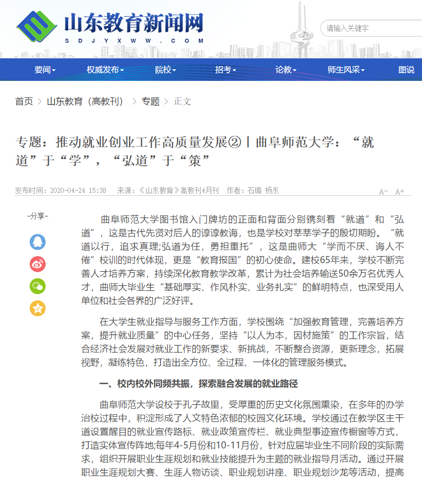 山东教育新闻:XK在线:推动就业创业工作高质量发展②