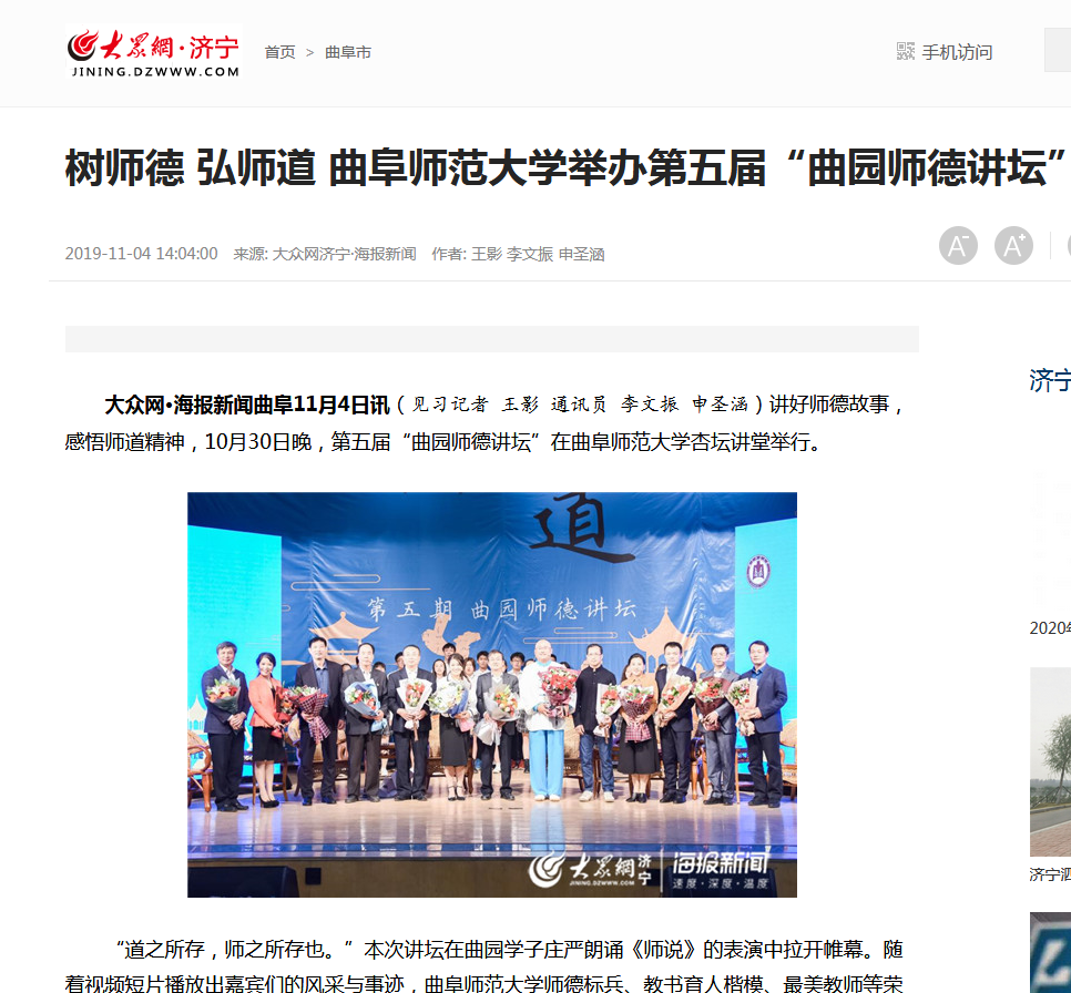 大众网:XK在线举办第五届“曲园师德讲坛”