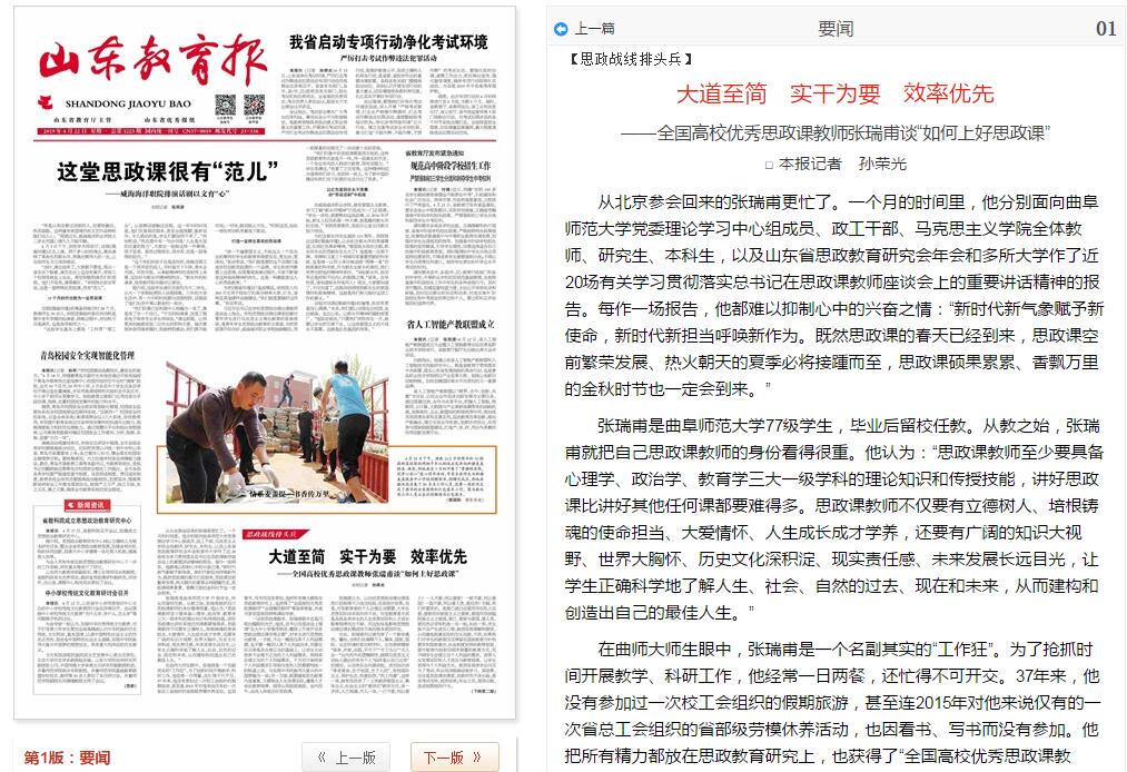 山东教育报:大道至简 实干为要 效率优先——全国高校优秀思政课教师张瑞甫谈“如何上好思政课”