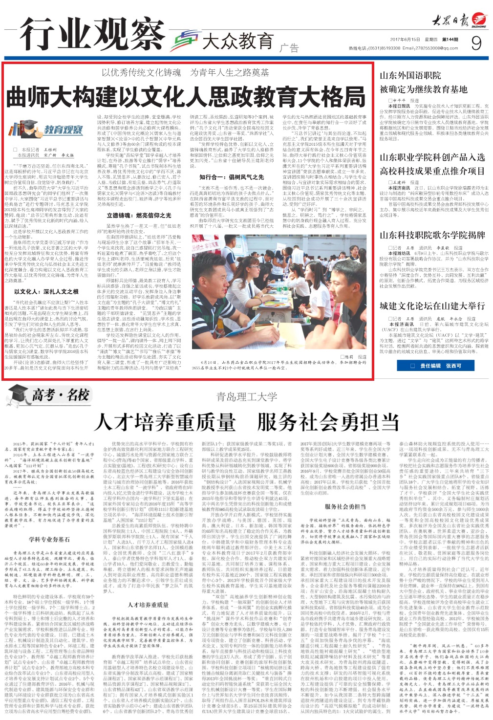 大众日报:曲师大构建“以文化人”思政教育大格局