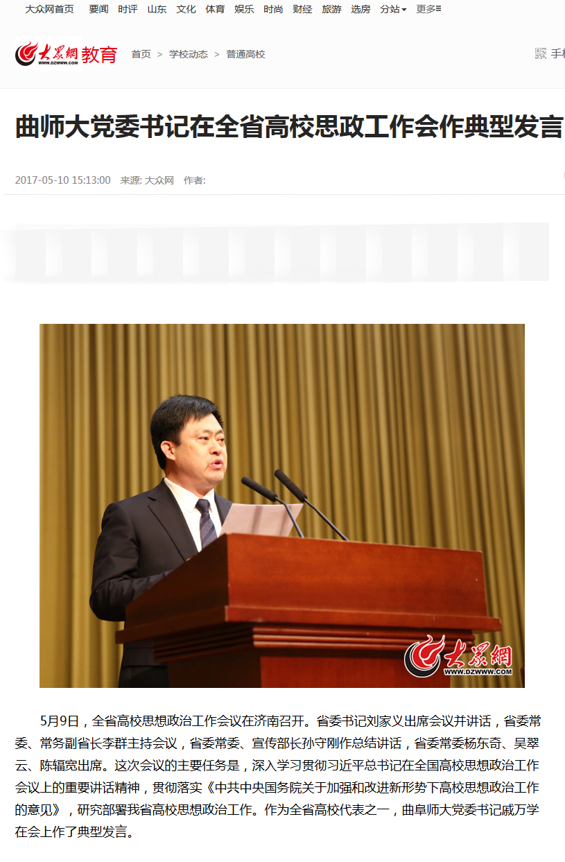 大众网:曲师大党委书记在全省高校思政工作会作典型发言
