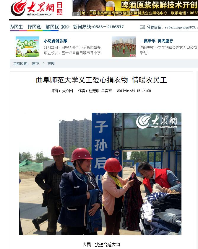 大众网:XK在线义工爱心捐衣物 情暖农民工