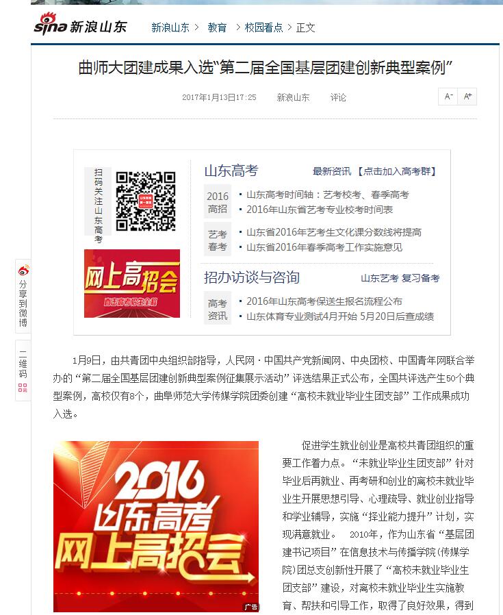新浪网报道链接:http://sd.sina.com.cn/edu/xykd/2017-01-13/172518078.html?qq-pf-to=pcqq.c2c