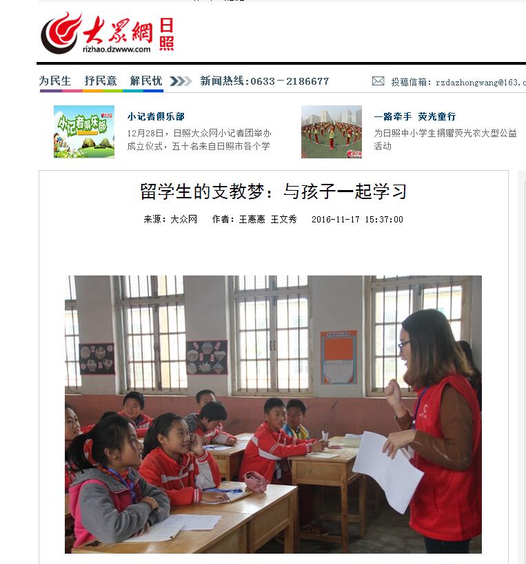 大众网:曲师大留学生的支教梦:与孩子一起学习