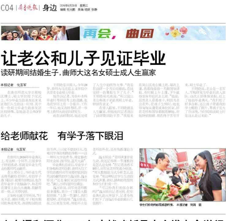 齐鲁晚报:毕业典礼给老师献花 有学子落下眼泪