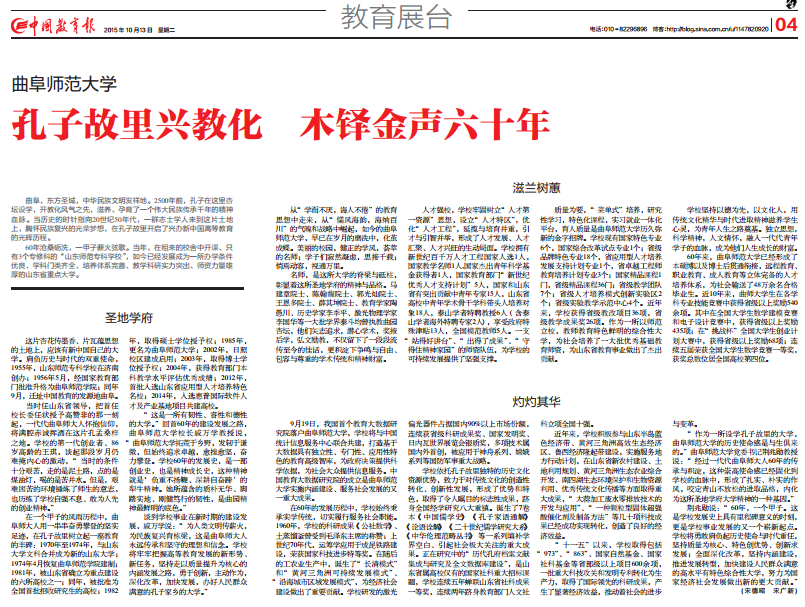 中国教育报报道链接:XK在线 孔子故里兴教化 木铎金声六十年