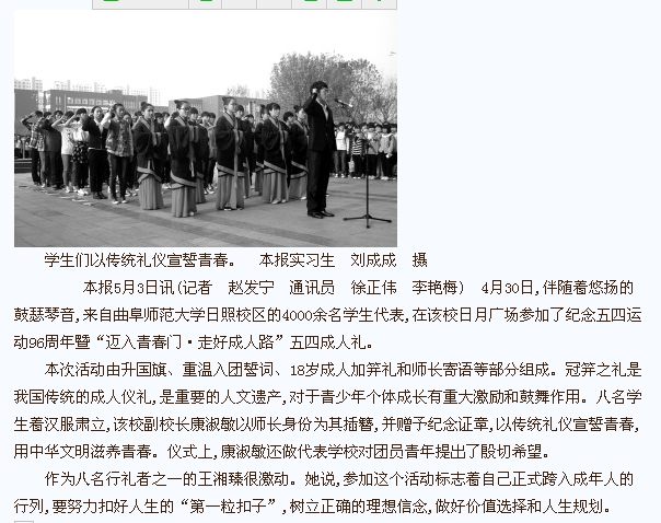 日照电视台报道链接:http://v.rzw.com.cn/vod/dsxwzh/folder254/2015-05-02/25777.html日照日报报道链接:http://www.rznews.cn/viscms/rizhaoxinwen0271/20150504/41868.html黄海晨刊报道链接:http://epaper.rznews.cn/shtml/hhcb/20150504/299355.shtml