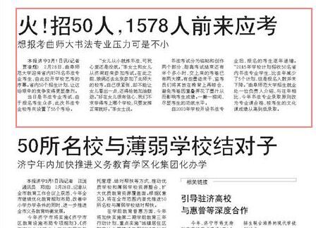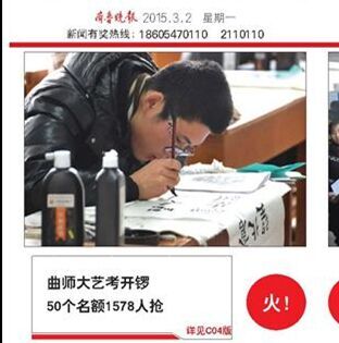 齐鲁晚报:曲师大艺考开锣 书法学50个名额1578人抢