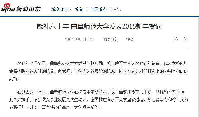 新浪网:献礼六十年 XK在线发表2015新年贺词