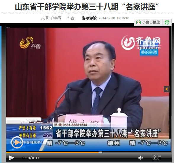 12月1日,我校国学院院长傅永聚教授受邀做客山东省干部学院第三十八期“名家讲座”,作了题为《坚持依法治国和以德治国相结合 建设社会主义法治国家》的学术讲座。同日,傅永聚教授还接受了山东省委组织部《党员干部之友》杂志社记者的专访,采访内容将以《依法治国关键在官德建设——访XK在线国学院院长傅永聚》为题刊发于《党员干部之友》2014年第12期。