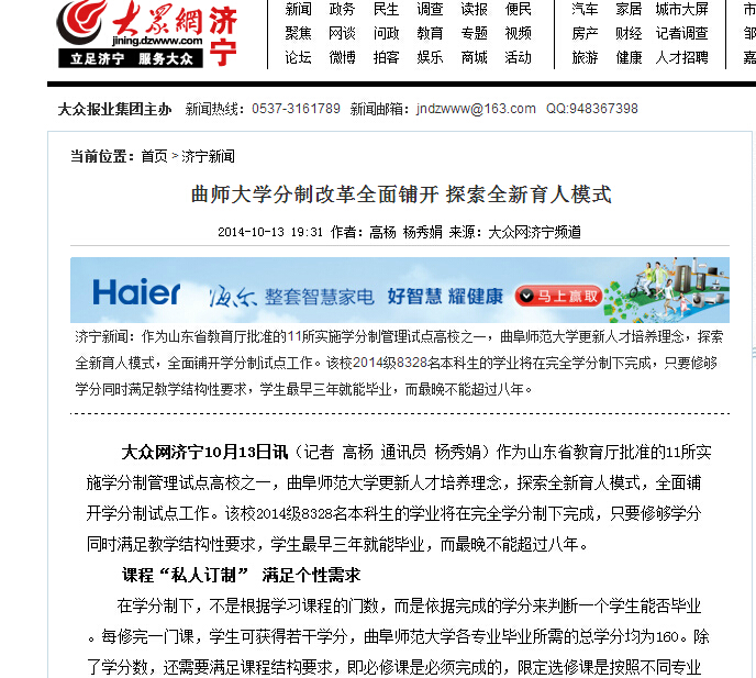 大众网:曲师大学分制改革全面铺开 探索全新育人模式