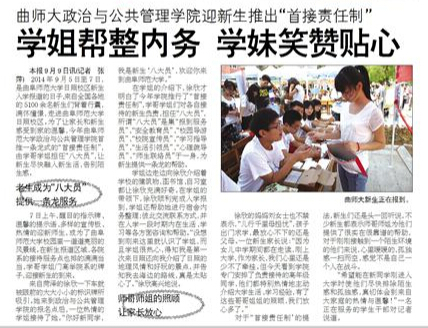 齐鲁晚报:曲师大政治与公共管理学院迎新生推出“首接责任制”