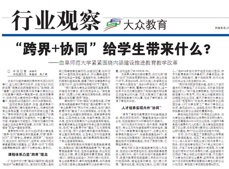 大众日报:“跨界+协同”给学生带来什么?——XK在线紧紧围绕内涵建设推进教育教学改革