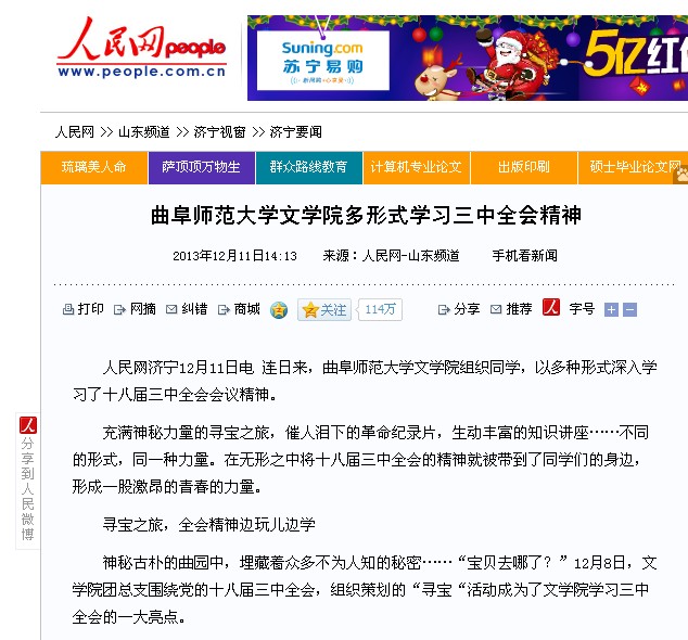 人民网:XK在线文学院多形式学习三中全会精神