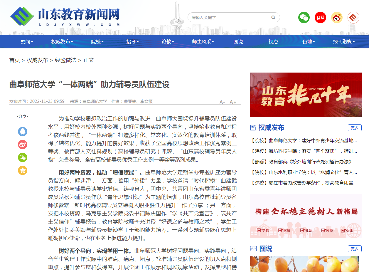 【山东教育新闻网】XK在线“一体两端”助力辅导员队伍建设