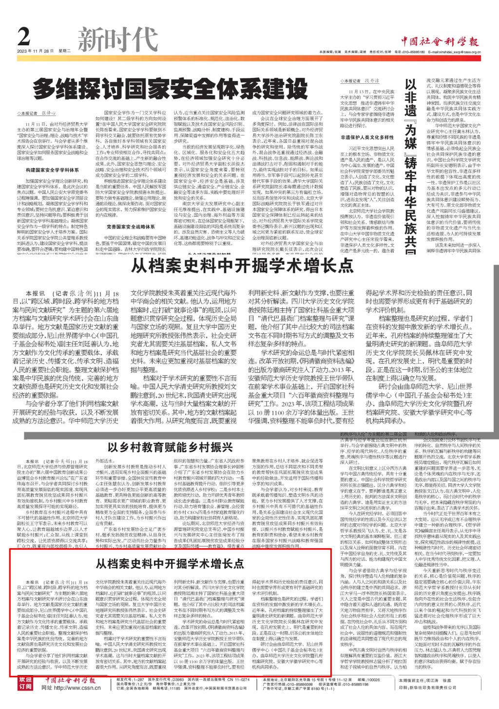 中国社会科学报报道链接:https://www.cssn.cn/skgz/bwyc/202311/t20231128_5699310.shtml