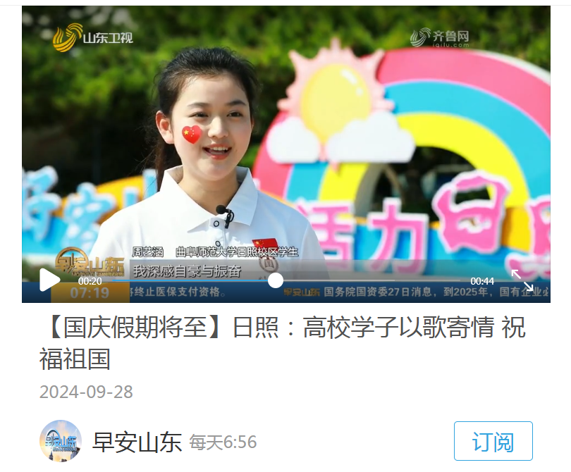 【山东卫视】曲师学子以歌寄情 祝福祖国