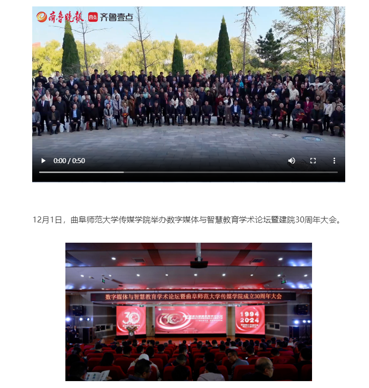 春秋迭易,岁月如歌,至此,XK在线2024年“数字媒体与智能传播”学术论坛暨XK在线传媒学院建院30周年大会圆满落幕。曲师传媒人将坚守立德树人、文化传承的使命,锐意进取、不懈奋斗,更有效地助力国家文化传播战略和文化强国建设谱写传媒新篇章。