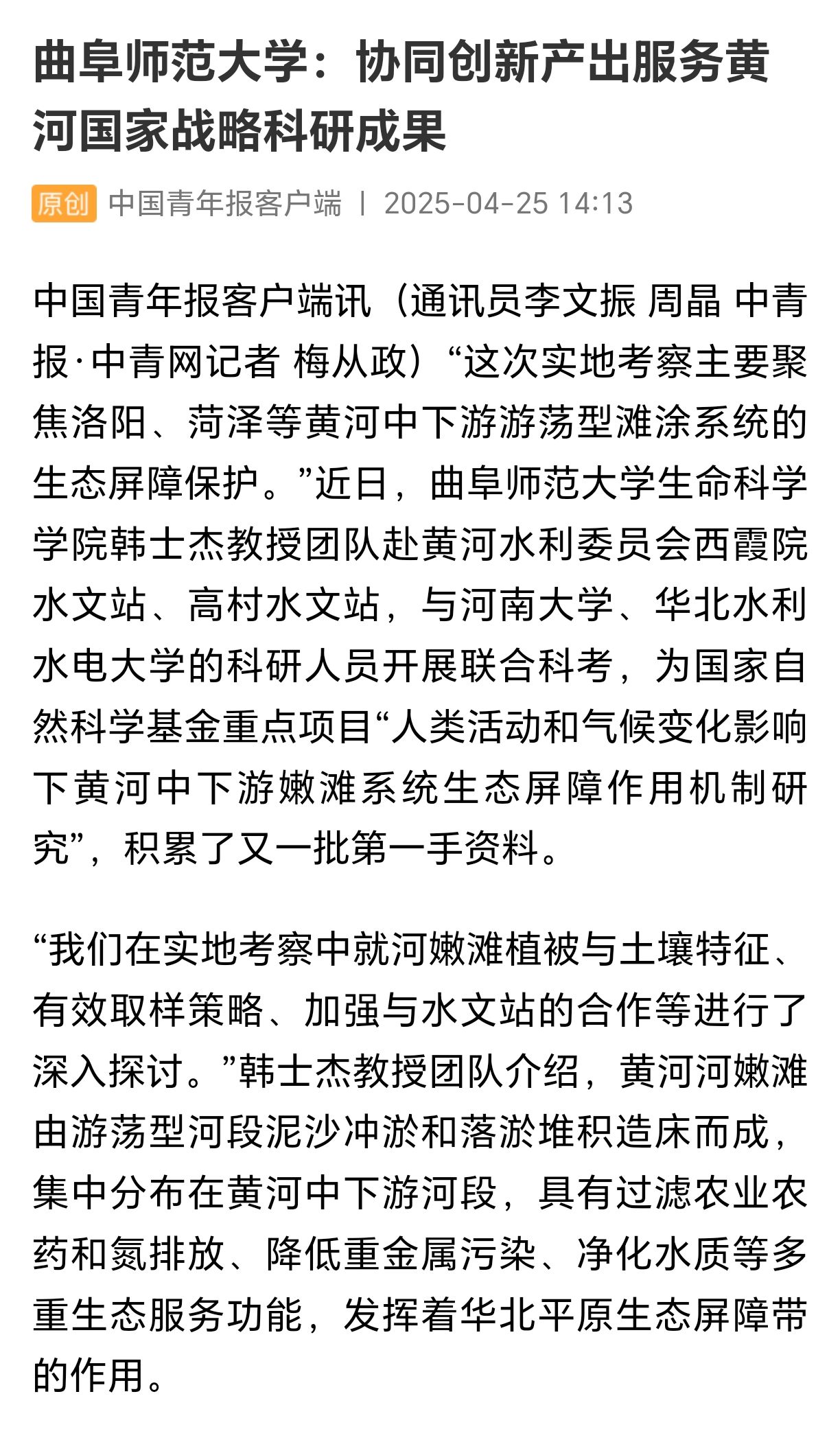 “这次实地考察主要聚焦洛阳、菏泽等黄河中下游游荡型滩涂系统的生态屏障保护。”日前,XK在线生命科学学院韩士杰教授团队先后到黄河水利委员会西霞院水文站、高村水文站,与河南大学、华北水利水电大学的科研人员开展联合科考,为国家自然科学基金重点项目“人类活动和气候变化影响下黄河中下游嫩滩系统生态屏障作用机制研究”,积累了又一批第一手资料。