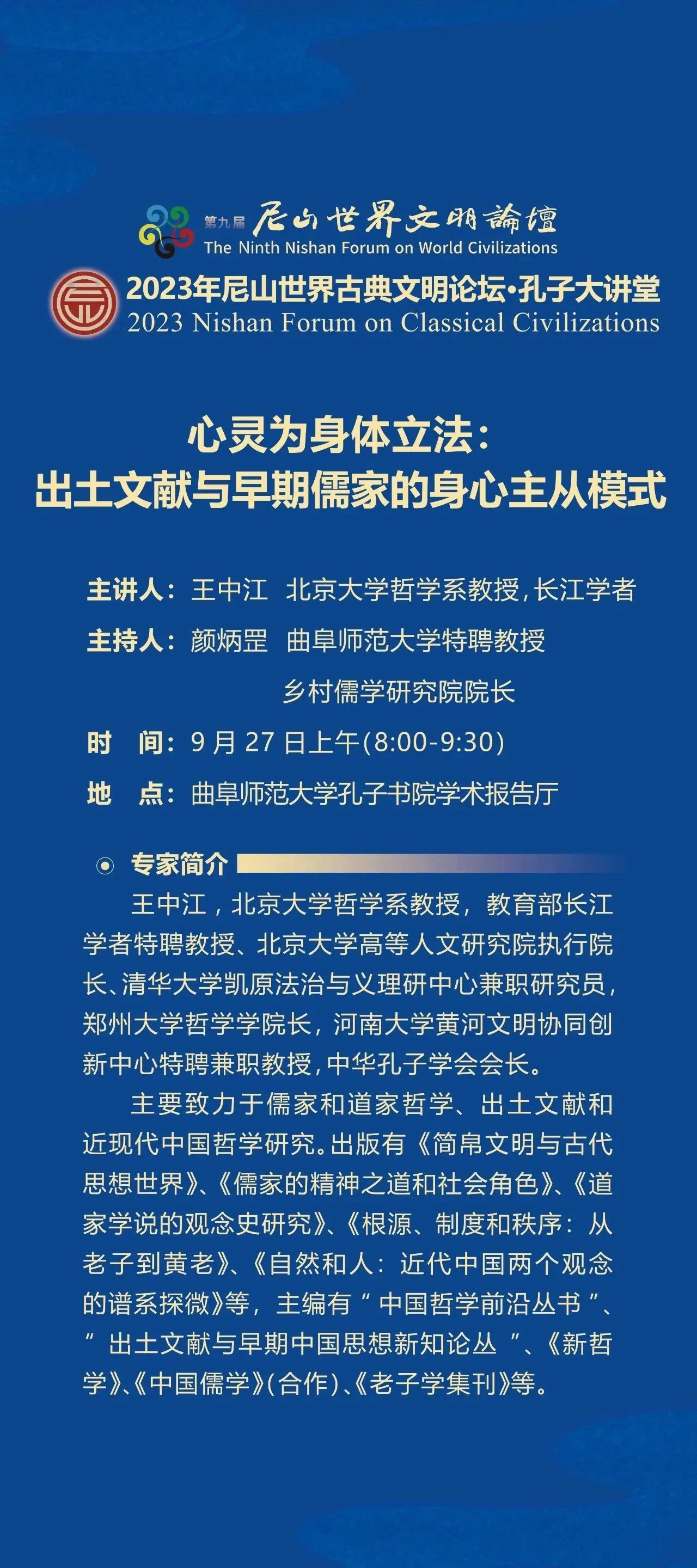 孔子大讲堂预告| 王中江:《心灵为身体立法:出土文献与早期儒家的身心主从模式》