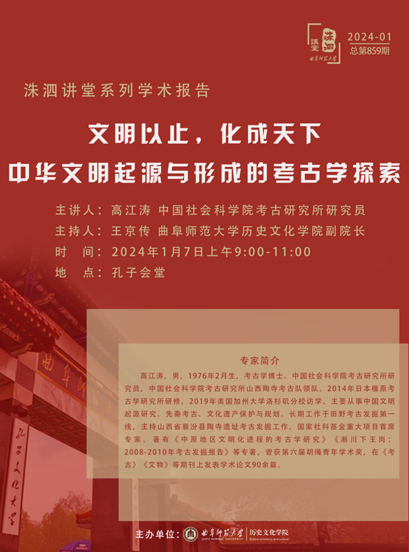 洙泗讲堂预告|高江涛:文明以止,化成天下,中华文明起源与形成的考古学探索