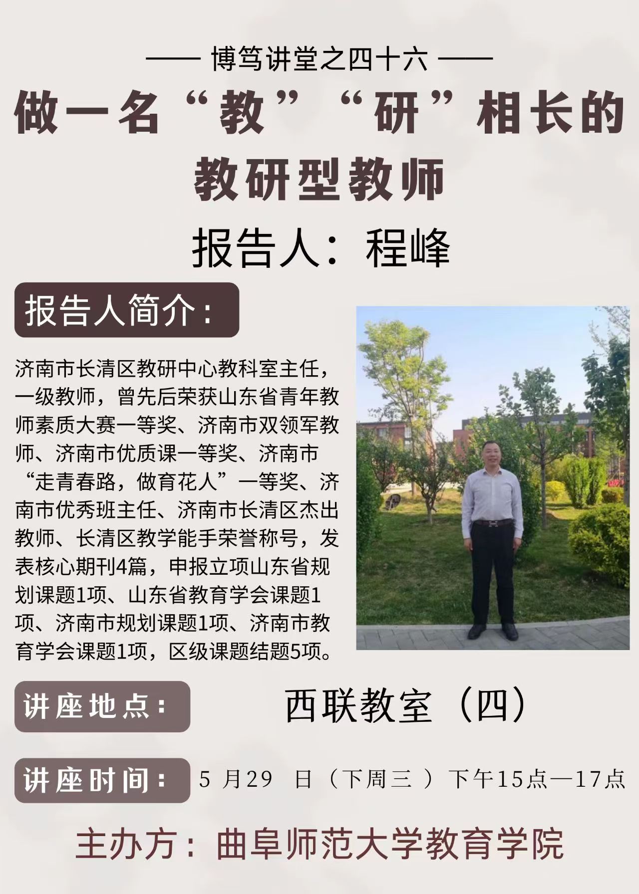 博笃讲堂预告| 程峰:做一名“教”“研”相长的教研型教师