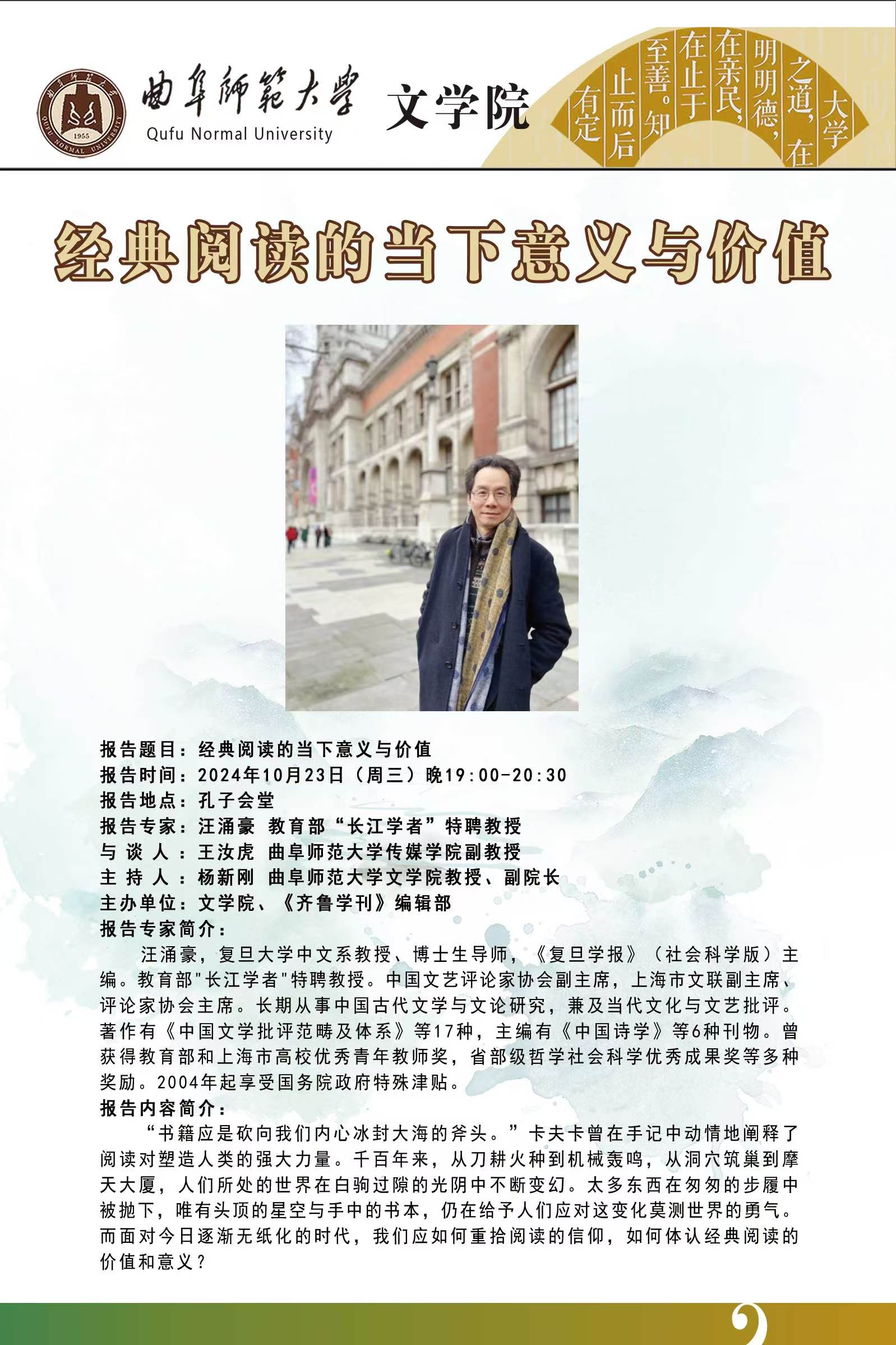 文学院学术报告预告:经典阅读的当下意义与价值