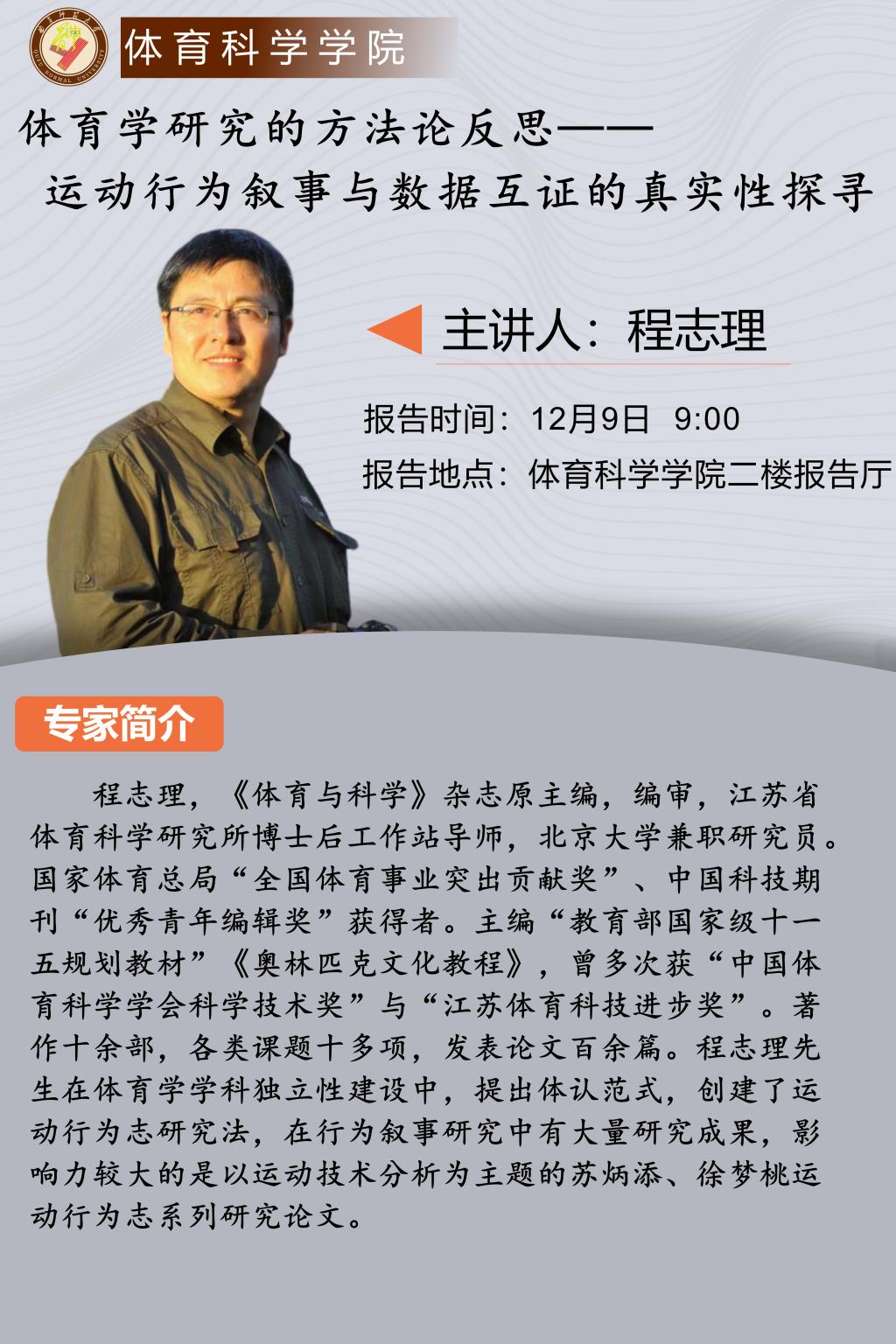 体育科学学院专家报告:体育学研究的方法论反思——运动行为叙事与数据互证的真实性探寻
