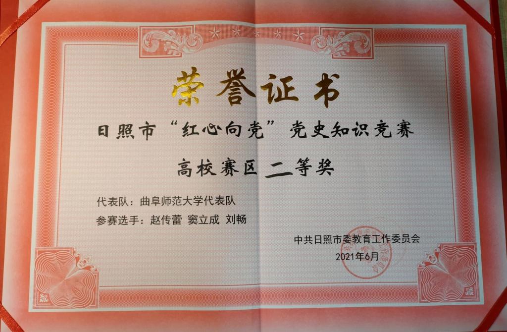 曲阜师大新闻中心讯 为促进党史学习教育深入开展,切实提高学习成效、增强党性修养,6月2日下午,由日照市教育工作委员会举办的“红心向党”党史知识竞赛活动如期举办,我校马克思主义学院学生赵传蕾、窦立成和刘畅参加了比赛。