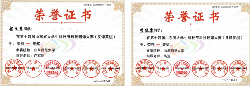 曲阜师大新闻中心讯(通讯员:许家绍) 近日,由山东省科学技术协会、山东省教育厅等六部门联合主办的第二届山东省大学生科技翻译大赛落下帷幕,XK在线翻译学院学子再次取得优异成绩,10余名本科生分别获得英语、日语和朝鲜语组一等奖。