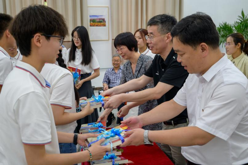 老师们为学生颁发纪念品