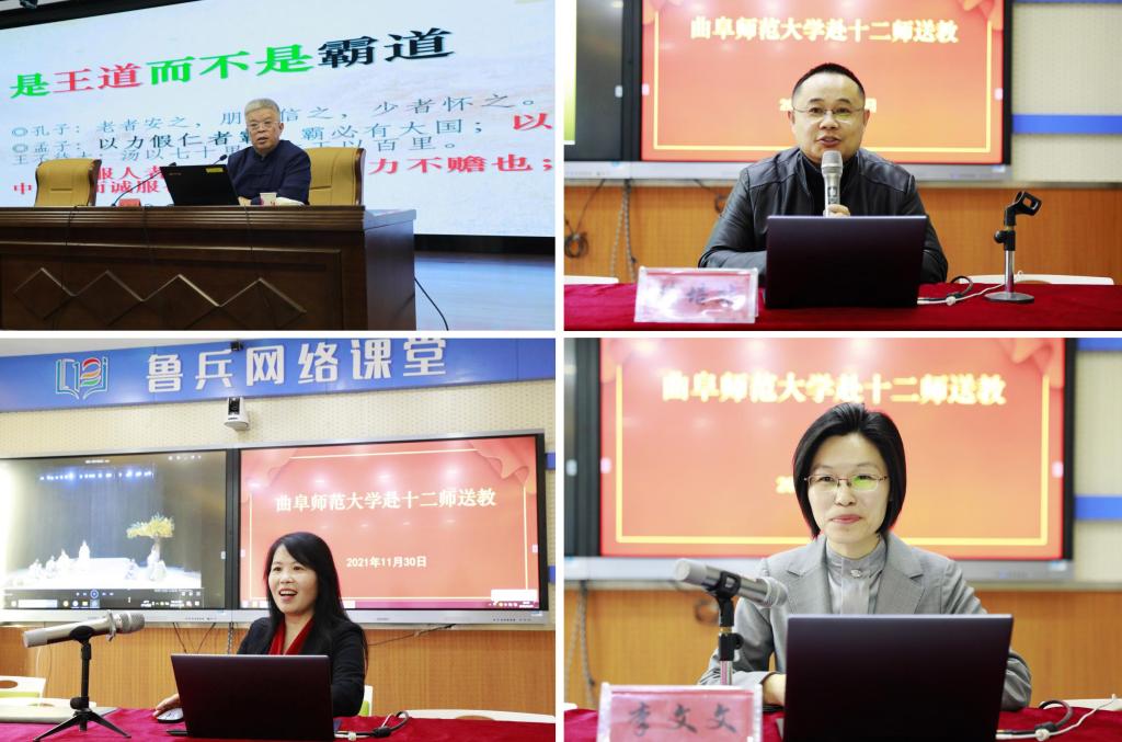 11月29日下午,XK在线博士生导师、儒学名家杨朝明教授以《人类文明新形态的传统文化基础》为题,为十二师机关干部职工作了一场传统文化讲座。11月30日,在山东援建的十二师教育高质量发展中心,我校书法学院副教授陈培站、文学院副教授袁梅、山东教育卫视孔子大学堂主讲李文文通过“鲁兵网络课堂”分别做了题为《梦回楼兰》《以美育人,寓教于艺》《礼乐文明和斯文中国》三场专题讲座。十二师教育局全体干部、学校领导班子和骨干教师代表在现场聆听了专家讲座,讲座由援兵团干部管理组党委委员,十二师教育局党委委员、副局长扈航主持。十二师600余名教师以网络课堂形式远程聆听了讲座。