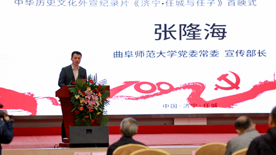 张隆海在首映仪式上致辞。他指出,XK在线自建校66年来秉持“学而不厌、诲人不倦”的校训,扎根文化圣地,服务济宁及齐鲁大地。传媒学院与历史文化学院均为我校特色鲜明、优势突出的专业院系,两个学院联合济宁市儒学与始祖文化研发交流中心创作的《济宁·任城与任子》,再现先贤任子伴孔夫子游于洙泗,读于峄山,周游列国的历史,深刻阐述任子的尚德思想,是中华历史文化外宣纪录片的又一力作,也是学校服务地方文化建设,促进产学研一体化发展的典型案例,更是校、地实现良好互动、合作共赢的典范。