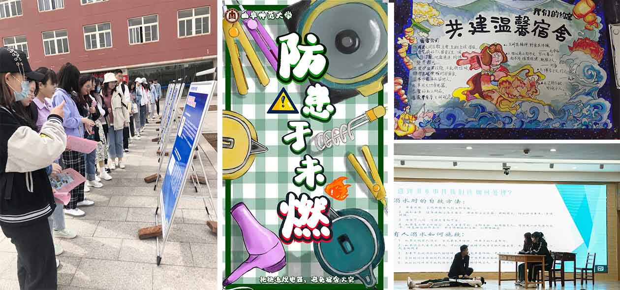 活动期间,学校开展了“创优良学风,做文明学生”文明主题教育活动,教育和引导在校生积极进取,发奋成才;开展了安全隐患排除整治活动,学生工作处、研究生处、保卫处等职能部门认真排查校园安全隐患,完善安全防范机制,积极构建平安校园;开展了“事故警示教育主题班会”,进一步把安全宣传贯穿到思想政治教育工作的具体环节中,用典型案例启示引导,以案说法、以案警示,使安全教育宣传入耳、入脑、入心;通过学院的微信公众号,广泛宣传珍爱生命主题的安全知识,提高学生的安全防范意识,增强自我保护能力。